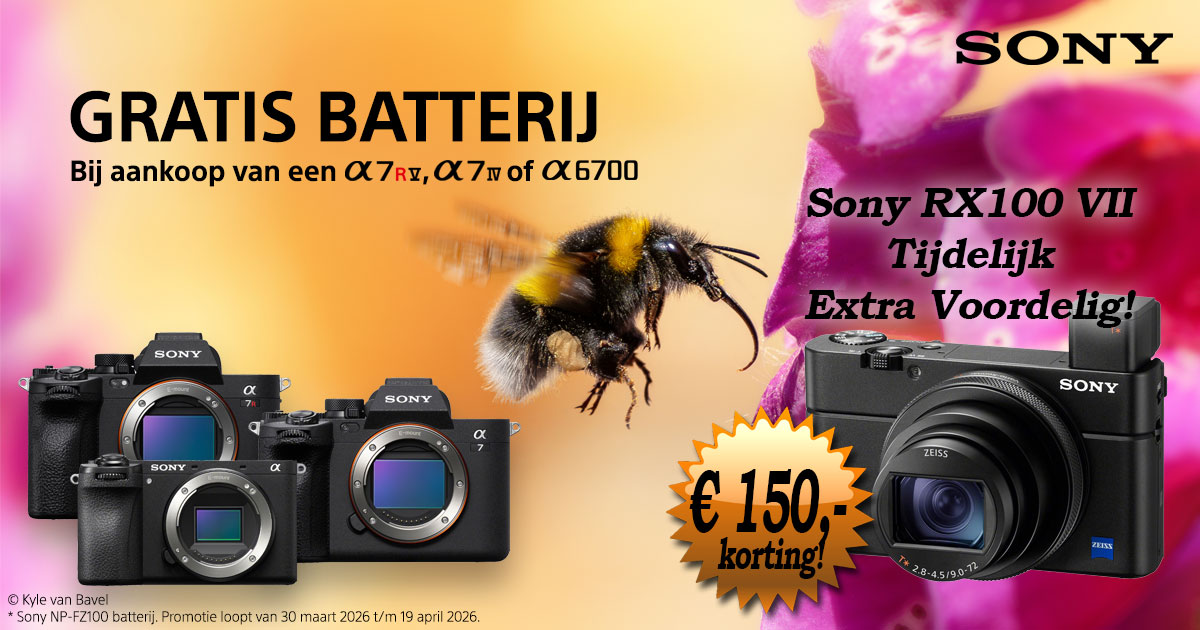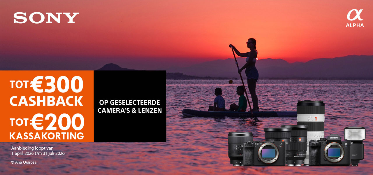 Sony is er vroeg bij dit jaar: van 1 april t/m 31 juli 2026 kunt u na aankoop van onderstaande actiemodellen uw cashback claimen op de speciale actiesite www.sony.nl/promo/camera. Uw voordeel kan oplopen tot wel € 300,-! Claims indienen kan tot uiterlijk 30 september 2026.