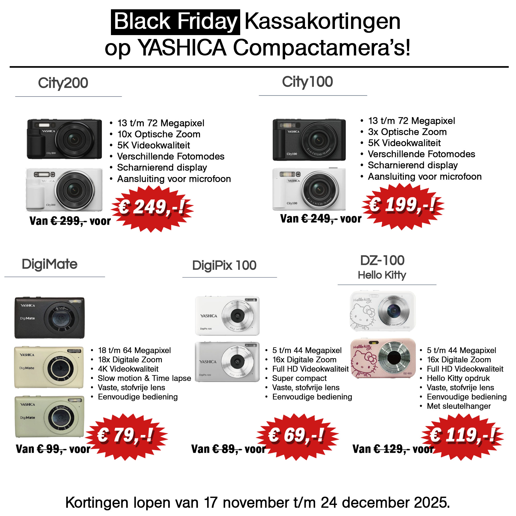 Heel leuk als Sinterklaas- of Kerstkadootje: Yashica compactcamera’s, om de feestdagen in trendy stijl vast te leggen! Leuk voor jong en oud, en nu extra voordelig!!